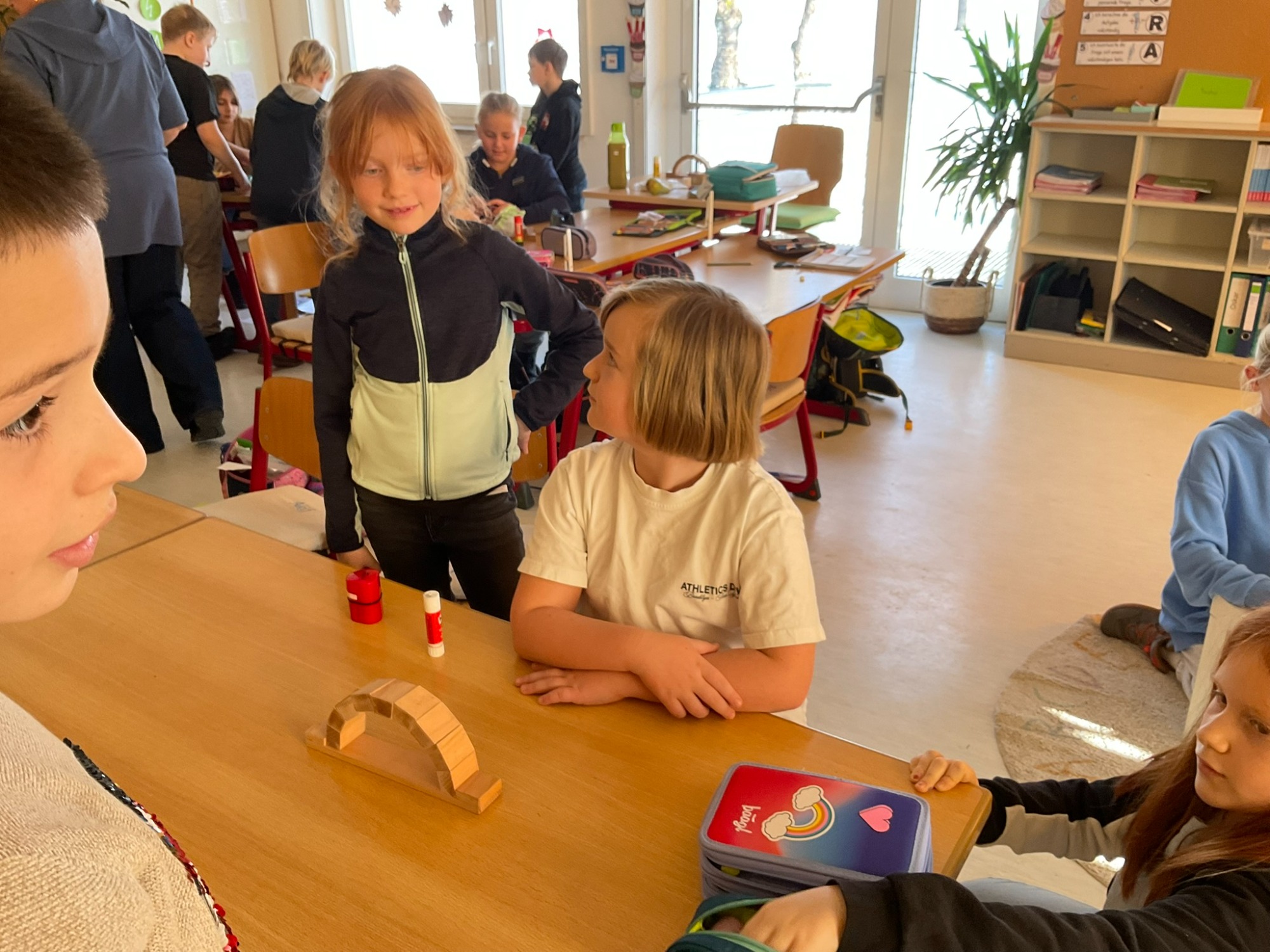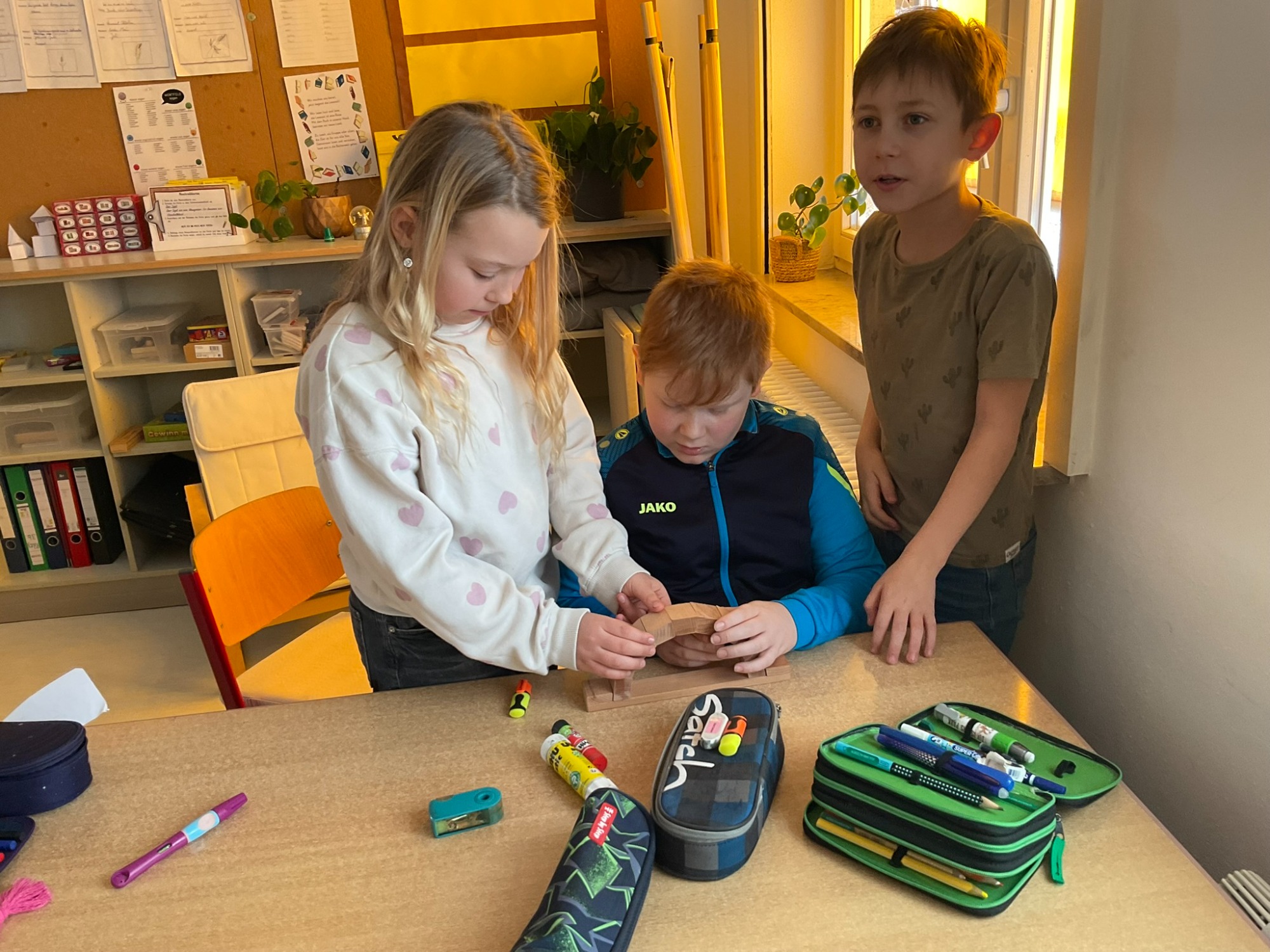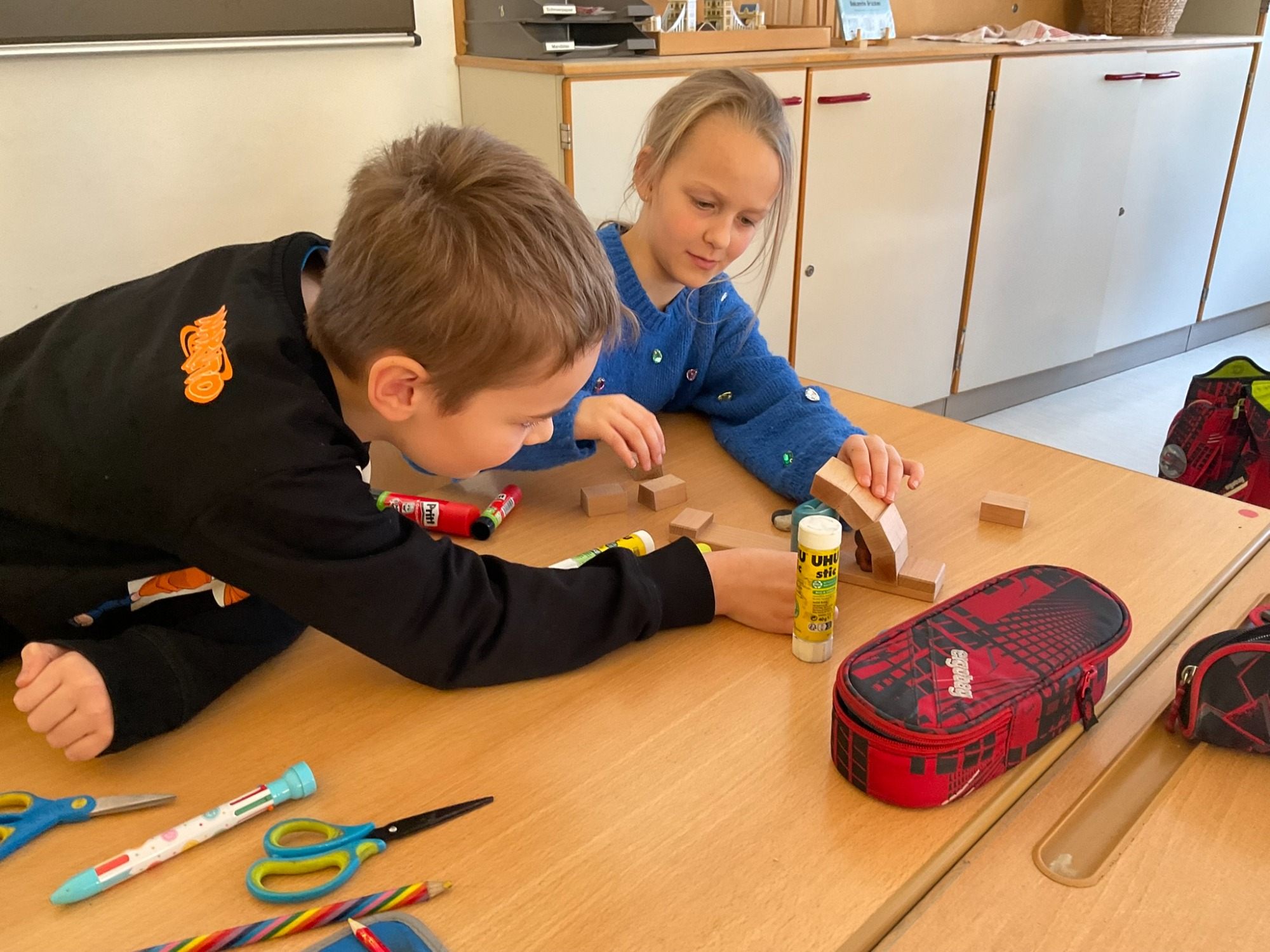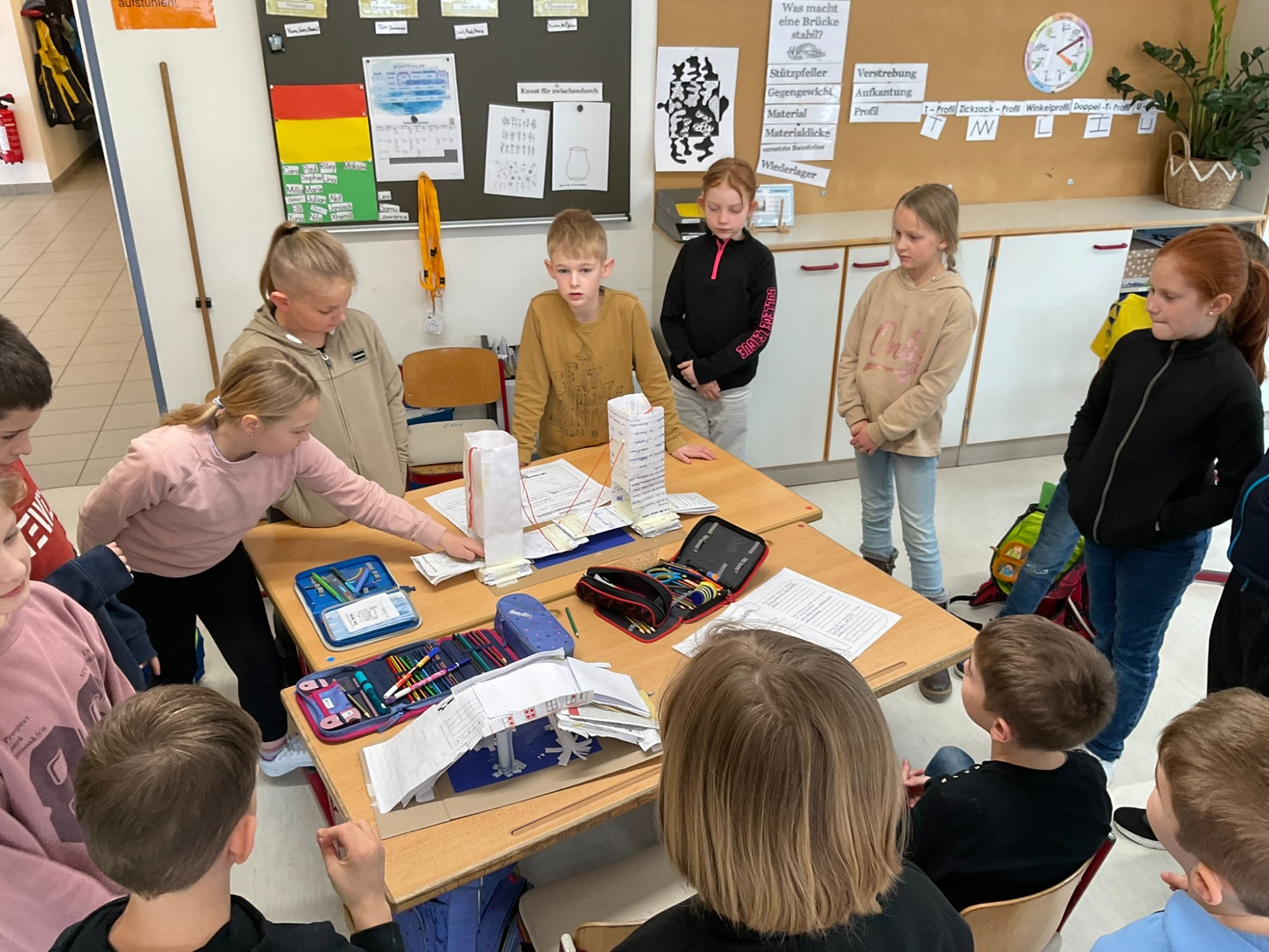In den vergangenen Wochen beschäftigten sich die Schülerinnen und Schüler mit dem Thema Brücken. Dabei lernten sie verschiedene Brückenarten wie Bogen-, Balken-, Hänge- und Fachwerkbrücken kennen sowie einige bekannte Brücken aus aller Welt. Außerdem erforschten sie, was eine Brücke stabil macht. Durch kleine Experimente und praktische Aufgaben wurde untersucht, wie Kräfte wirken und welche Bauweisen besonders tragfähig sind.