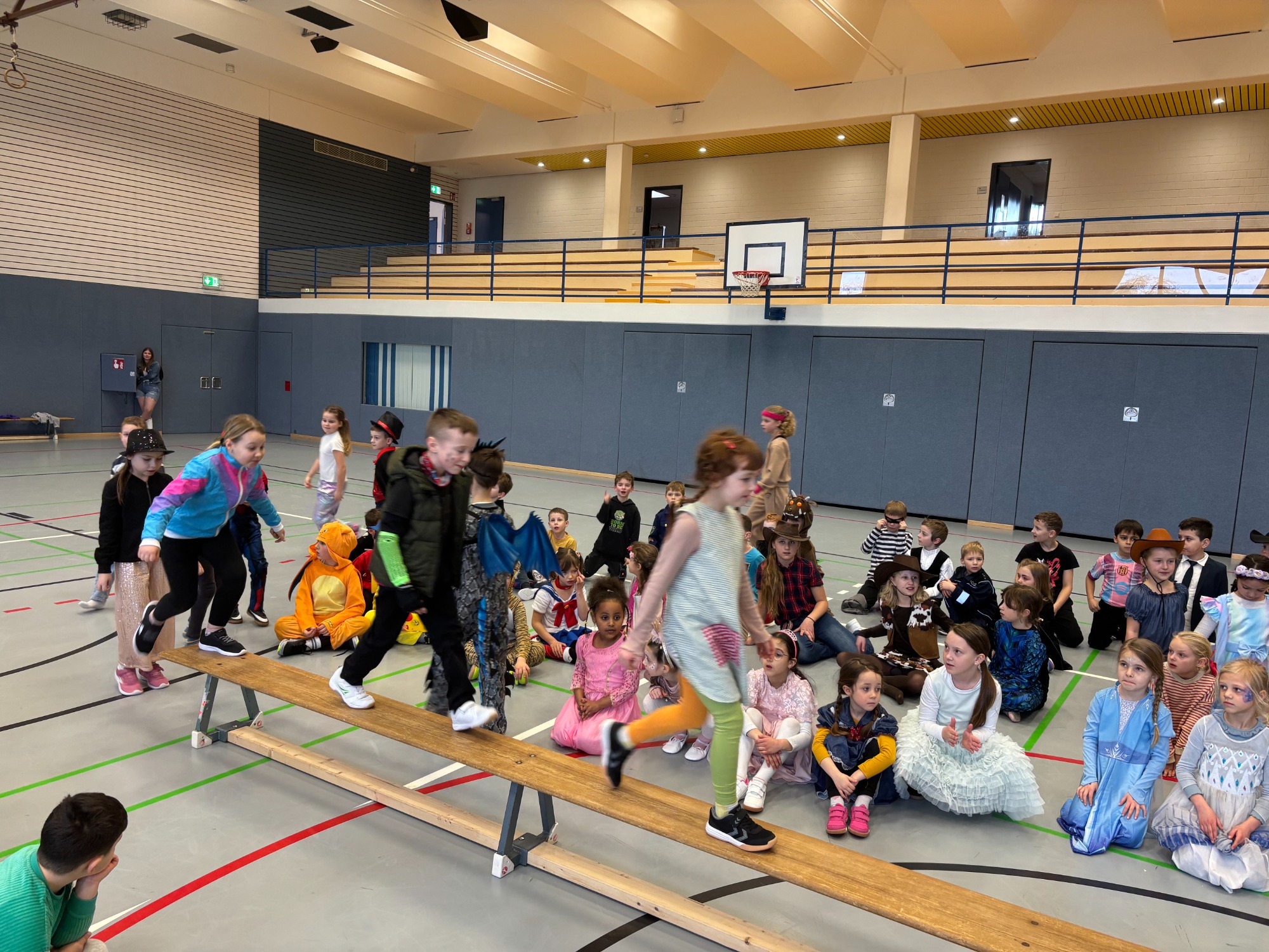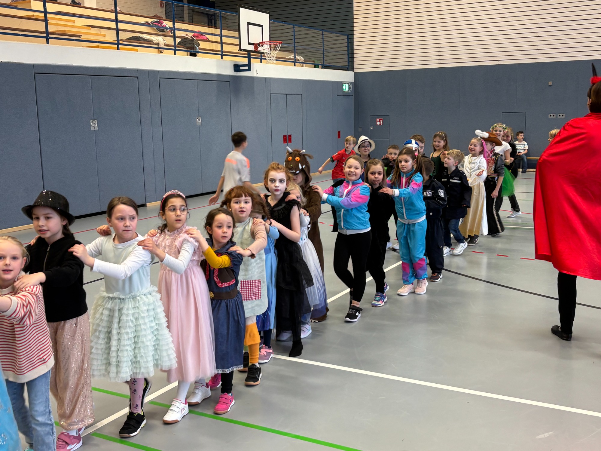 Am Donnerstag, den 12. Februar 2026 wurde es in der Grundschule in Obersontheim besonders bunt und fröhlich: Alle Kinder und Lehrkräfte durften verkleidet in die Schule kommen und sorgten schon am Morgen für eine ausgelassene Stimmung. In den Klassenzimmern tummelten sich Hexen, Feuerwehrmänner, Prinzessinnen, Ninjas, Cowboys, Tiere und viele weitere fantasievolle Gestalten. Die Vielfalt der Kostüme zeigte, dass sich alle mit viel Freude und Kreativität auf diesen besonderen Tag vorbereitet hatten. Nach der großen Pause ging es für alle Klassen gemeinsam in die Schubarthalle. Dort wurde bei fröhlicher Faschingsmusik ausgelassen gefeiert, getanzt und gelacht. Ein besonderes Highlight war die Kostümmodenschau bei der die Kinder stolz ihre Verkleidungen präsentieren konnten. Auch die traditionelle Polonaise durch die Halle durfte natürlich nicht fehlen und sorgte für viel Spaß bei Groß und Klein.