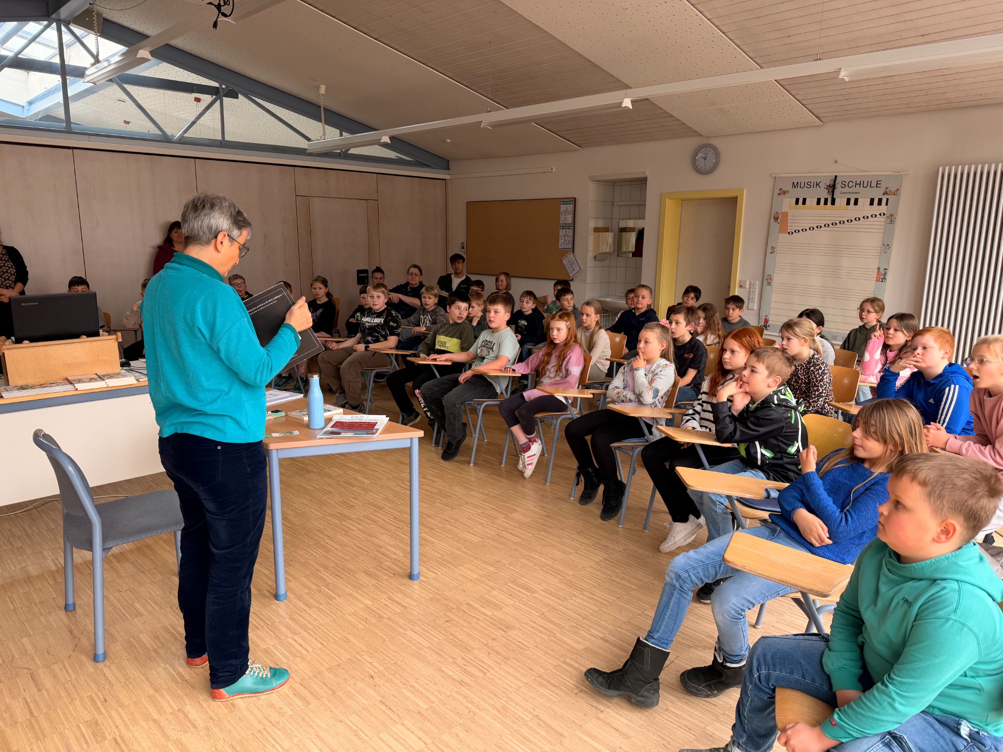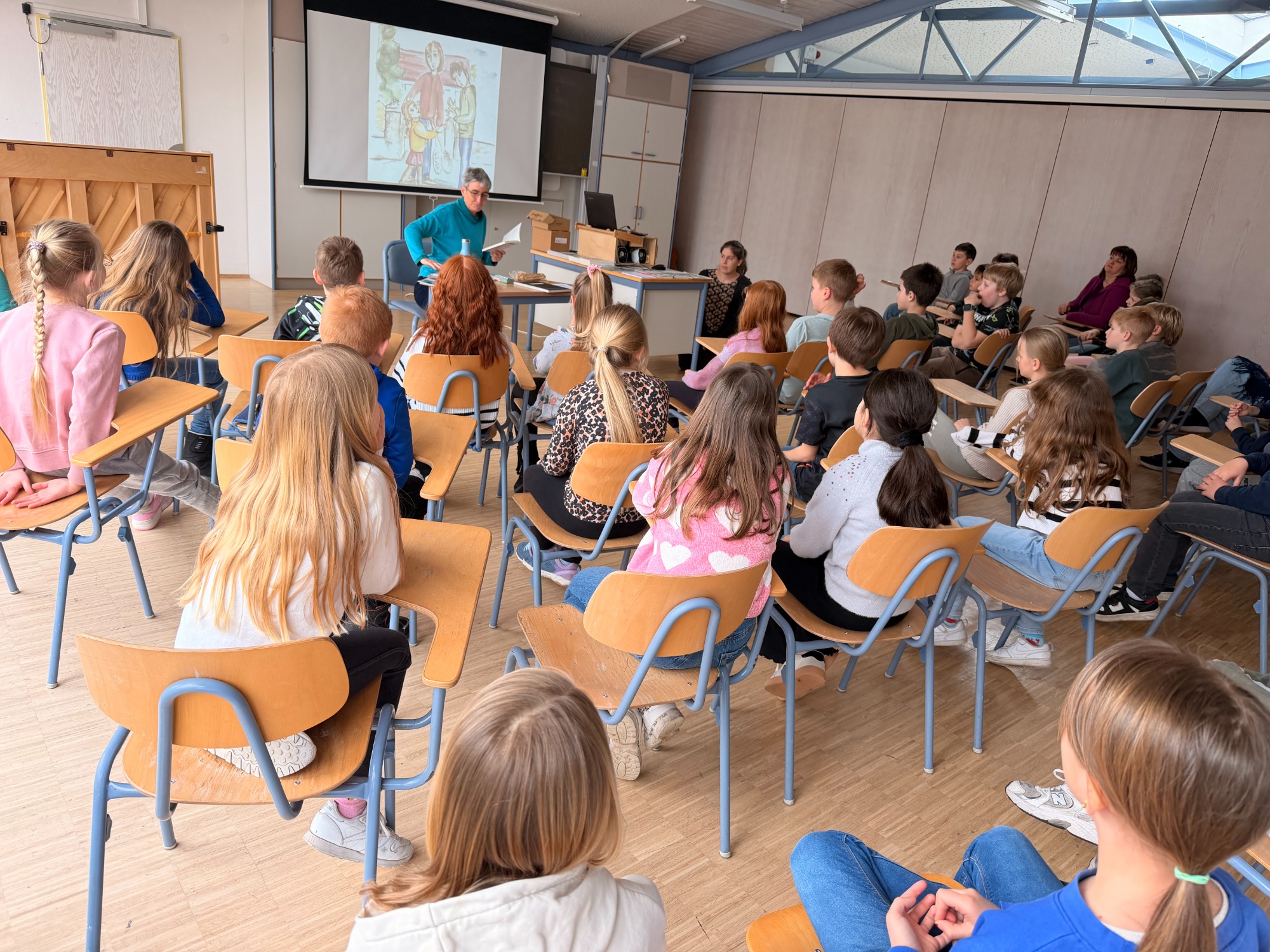 Die Schülerinnen und Schüler verfolgten die Lesung mit großem Interesse und waren begeistert von den lebendigen Einblicken in die Geschichte. Im Anschluss stellten sie zahlreiche Fragen zur Handlung, zu den Figuren und zur Arbeit einer Autorin. Angelika Kreidler beantwortete diese geduldig und ging einfühlsam auf die Beiträge der Kinder ein.